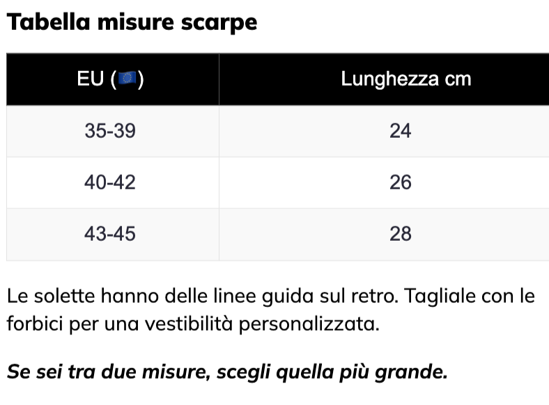 • Non serve scegliere una misura in più o comprare scarpe più grandi